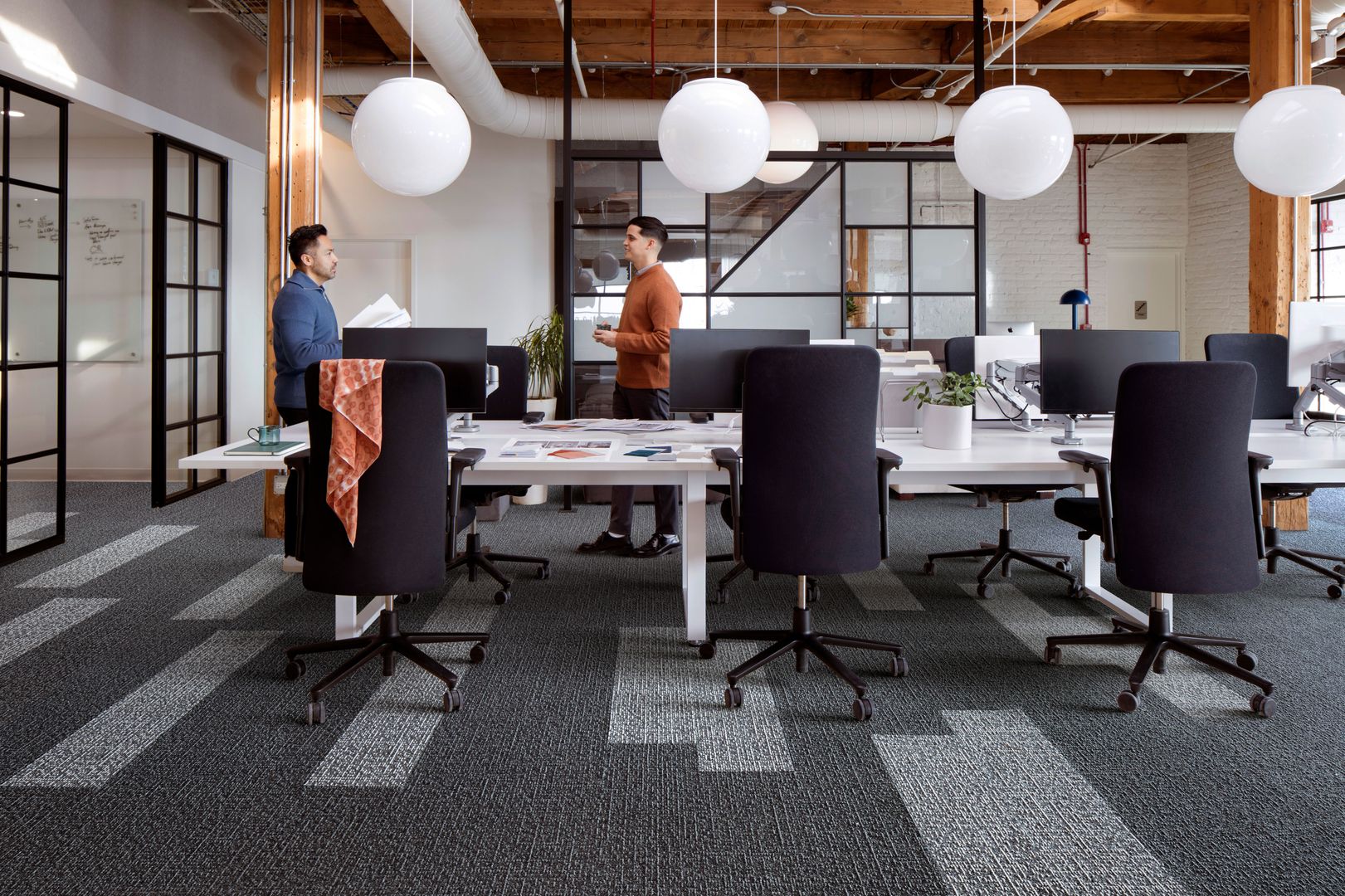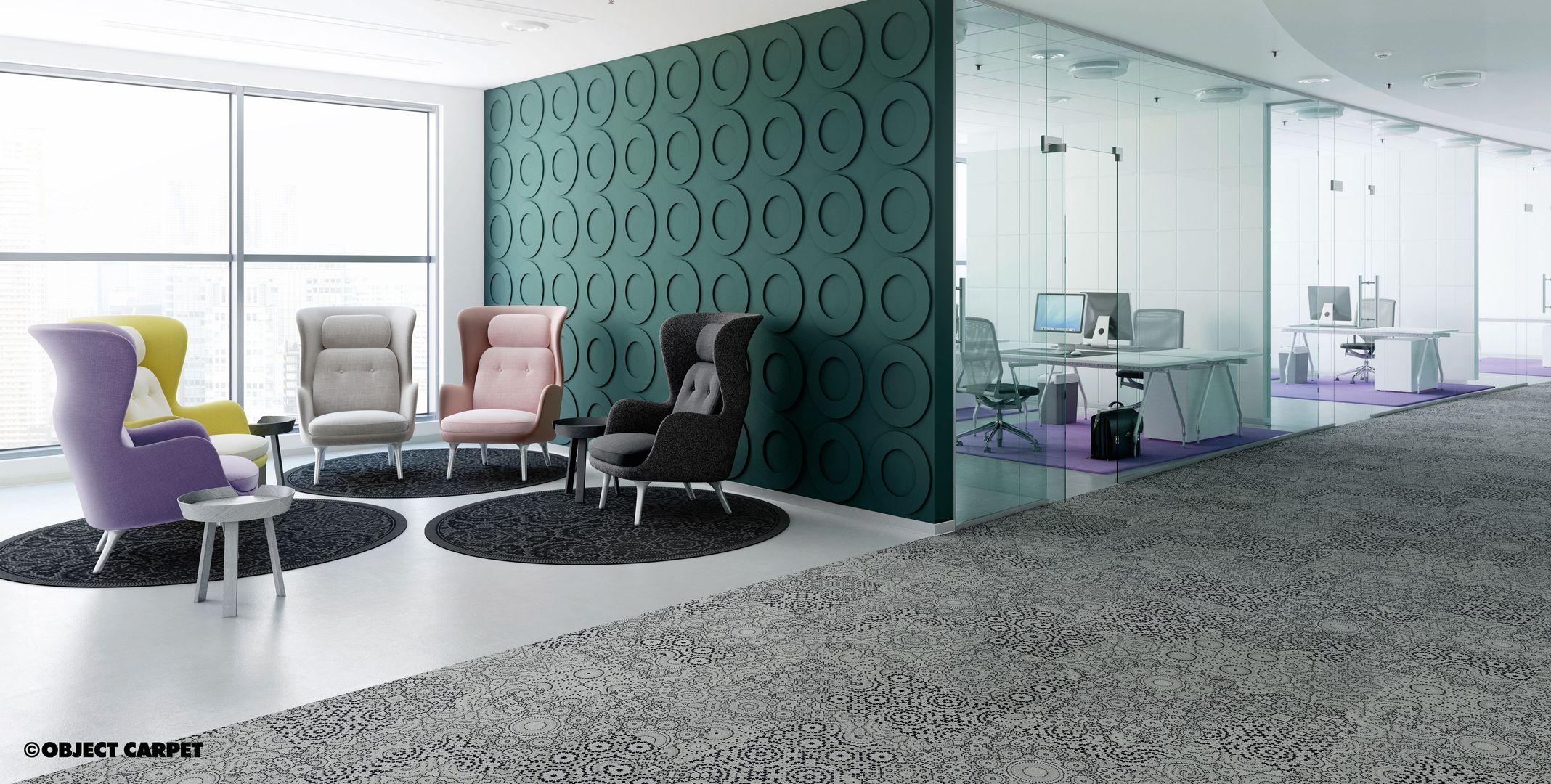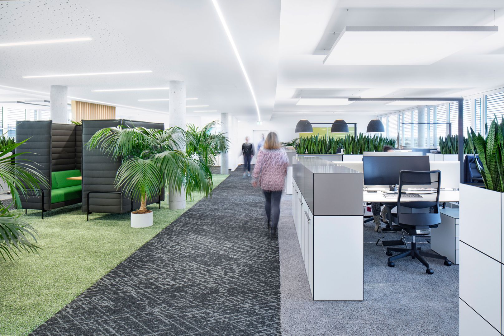 Neben der richtigen Belagswahl gibt es noch mindestens zwei weitere wichtige Aspekte, die in einem Büro berücksichtigt werden müssen: Die richtige Akustik und allfälliger Sichtschutz. Damit konzentriert gearbeitet werden kann sollten die Umgebungsgeräusche – wie lautes Sprechen, telefonieren oder das Gespräch in der Kaffeeküche – nicht allzu vorherrschend sein. Durch den Einsatz von schalldämpfenden Maßnahmen, wie beispielsweise Stoff- oder Filzelementen an Wänden oder Decken, lässt sich die Akustik gut steuern. Die beste und kostengünstige Lösung ist übrigens der Teppich, welcher hinsichtlich Farbe und Material zum übrigen Interior abgestimmt sein kann.